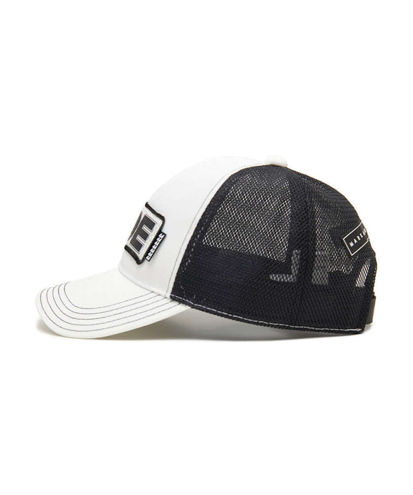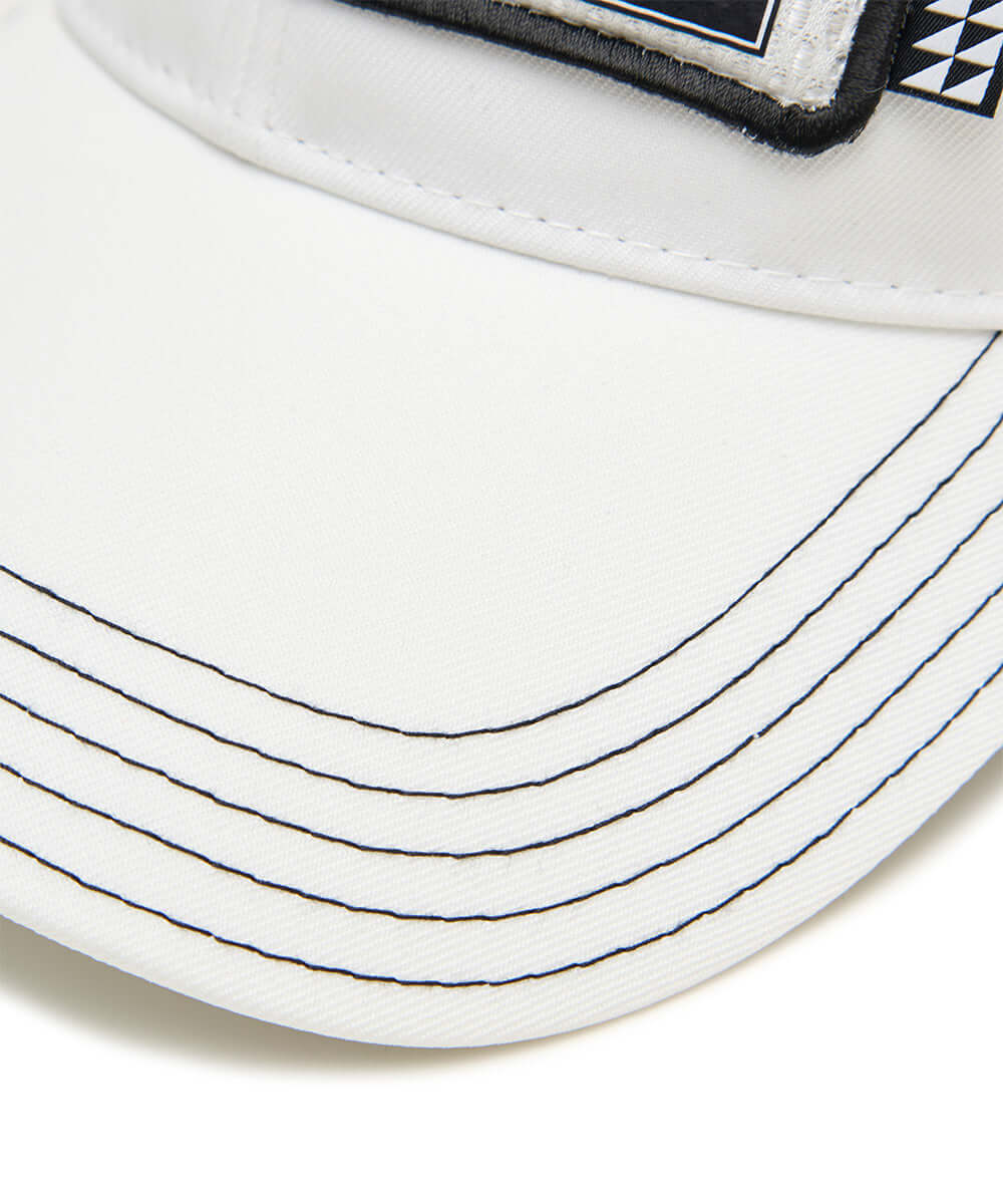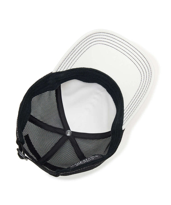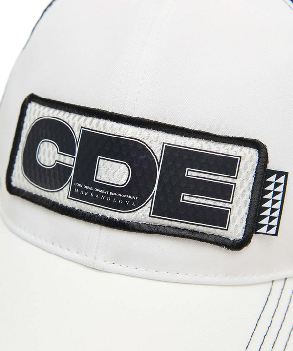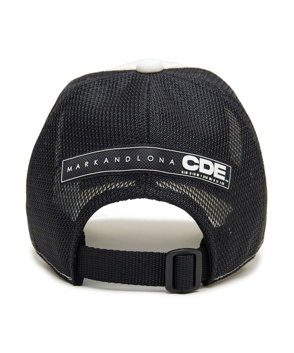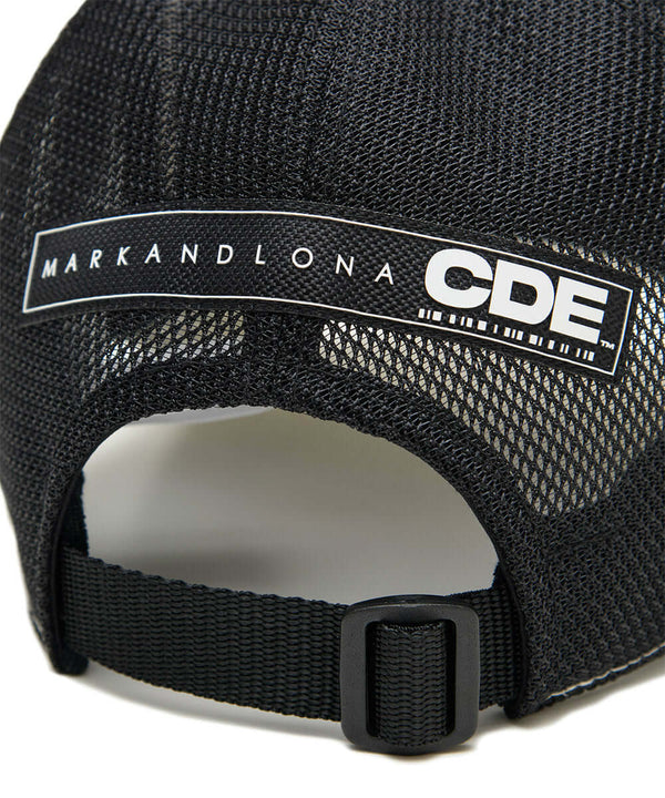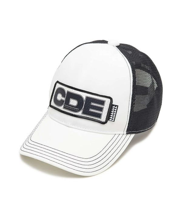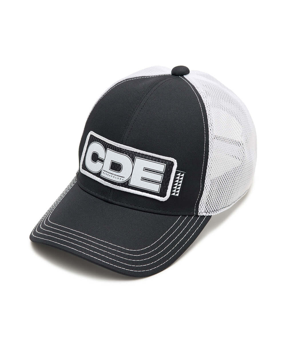 フロントのCDEロゴが象徴的なメッシュタイプの6パネルのベースボールキャップ。メッシュ素材は蒸れを軽減し快適。ビン革にはパイル素材を使用しているので汗を吸収し、快適な着用感。また磁石式のバックルを使用。余ったテープはキャップの内側に仕舞い込んで、すっきりと被ることができます。