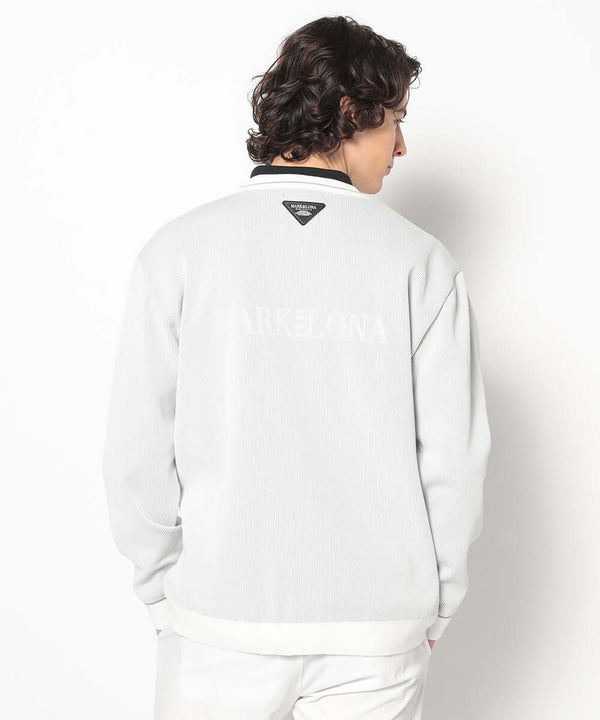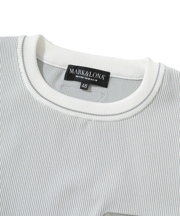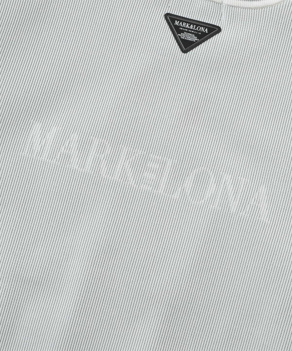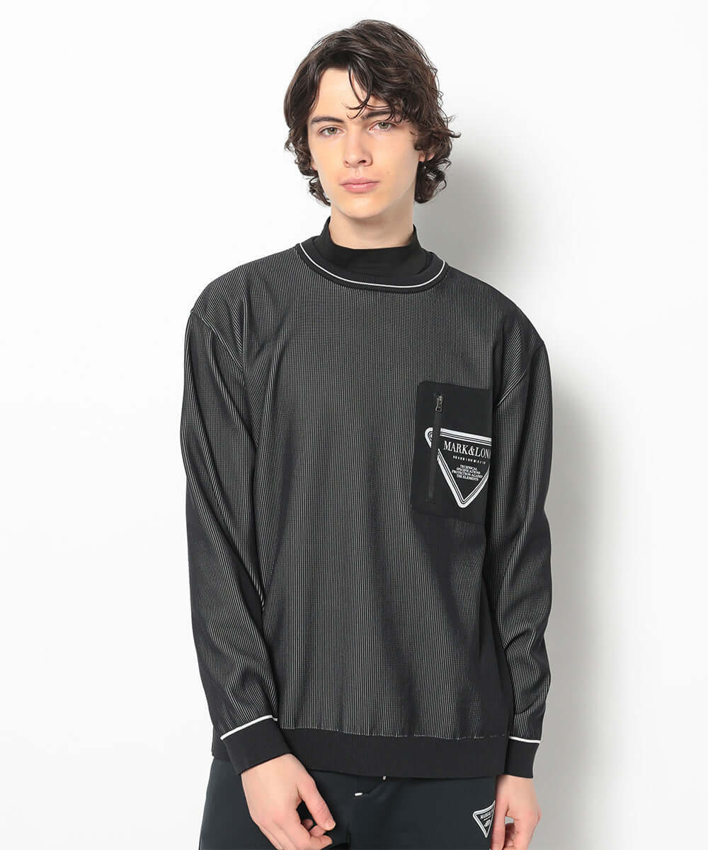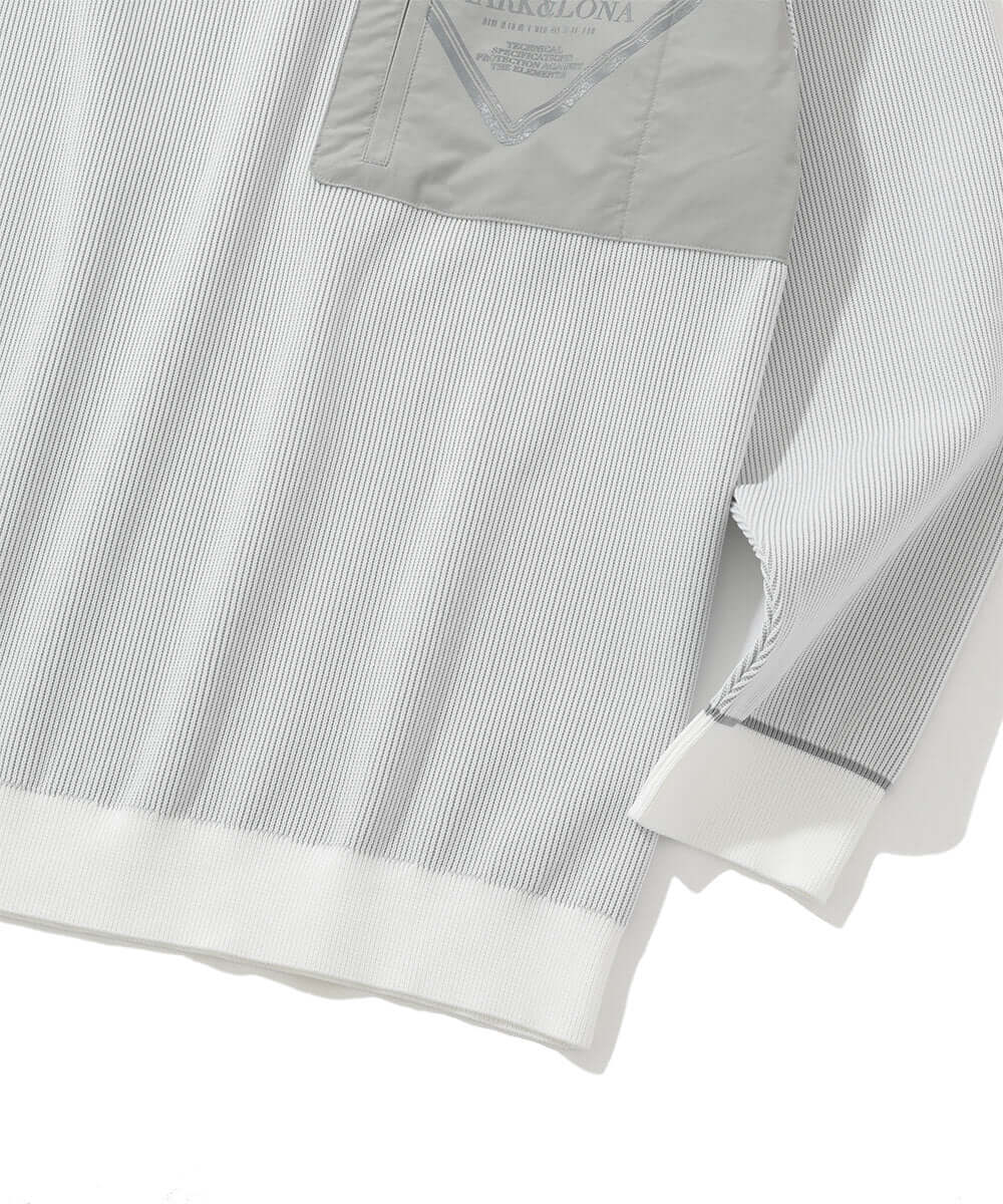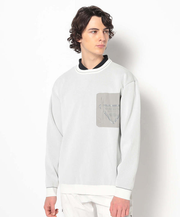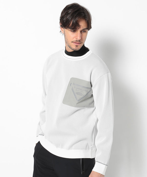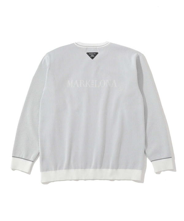 ワンポイントのロゴプリントが際立つシンプルなリブ地のロングスリーブニットプルオーバー。軽さとパウダータッチが特徴のハイカウントポリエステル素材で編んだリブ地のニット。身頃と肩まわりにゆとりをもたせつつ、袖周りをシャープに仕上げたレギュラーフィットシルエット。ノンストレスの着心地と適度なストレッチ性により、快適なラウンドをサポートします。