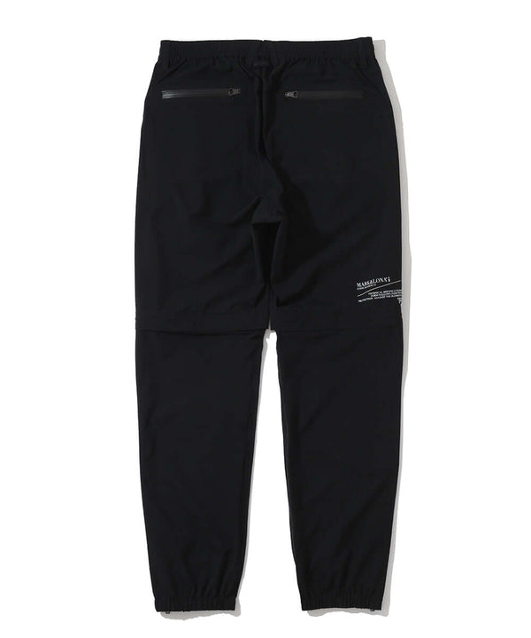 ディタッチャブル2WAYテクニカルレインパンツ。優れた防水性と透湿性のバランスにより衣服内を快適にキープ。高いストレッチ性、撥水透湿性、耐風性、通気性、柔軟性、軽量性に優れ、耐水圧20,000㎜レベル、透湿度26,000g/m²/24hrレベル。オーバーパンツとしての着用を想定したゆとりをもたせつつ、体の構造に合わせた立体的なパターンによるスッキリしたシルエット。また、膝下が取り外し可能な2WAY仕様。天候や気温によってお好みの着こなしを楽しめます。ポータブルな同素材のポーチを付属。同素材のジャケット(MCM-5A-AL50)とのコーディネートがオススメです。