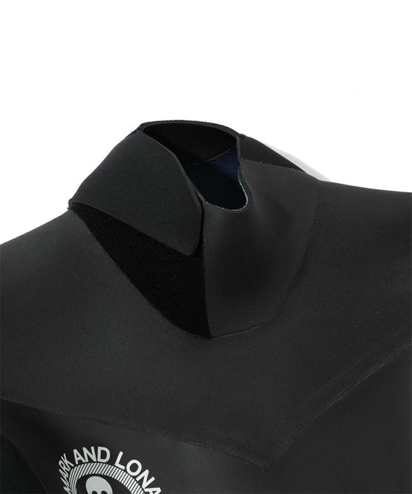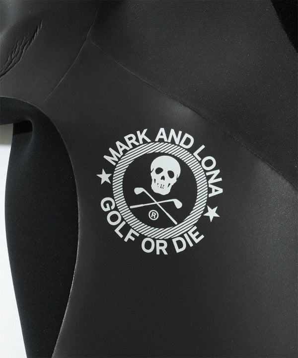 右胸にMARK & LONAを象徴するサークルスカルロゴ、右後ろにFERロゴプリントをそれぞれ施しています。手首・足首の切り口内面には、滑り止めのシリコンテープを装着。激しいアクションによるめくれ上がりを防ぎ、防水性を高めています。青海波をモチーフとしたデザインで、ジャパンメイドのこだわりを表現しました。