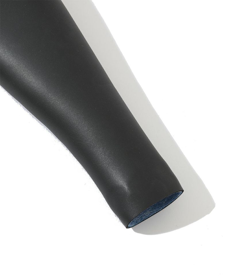 着用中のストレスを軽減する、軽量な2mmソフトラバーを採用。肌面には伸縮性抜群のポリエステル中空糸をラミネートし、マカロニ状の繊維内部にデッドエアーを溜めこむことで保温性も確保。倉敷市児島発のデニムメーカー・ジャパンブルーに別注して染色した、機能性抜群のオリジナルマテリアルです。また、表スキンの面積をより多く確保できるカッティングを採用。気化熱による体温の低下を軽減し、まるで吸い付くようにしなやかな着心地を実現しました。