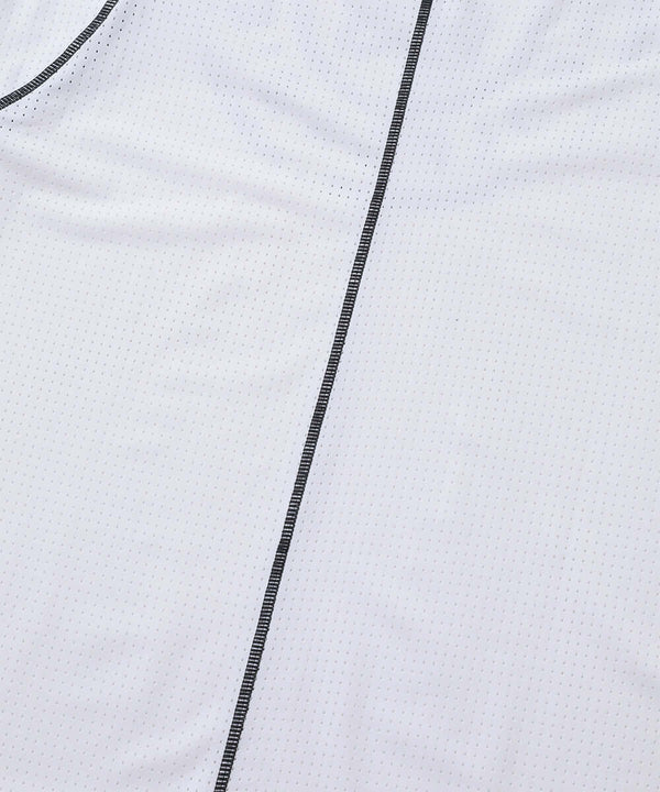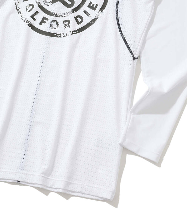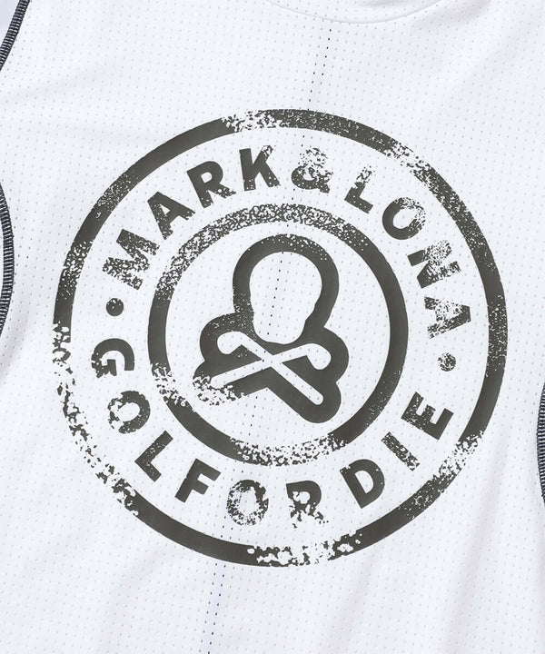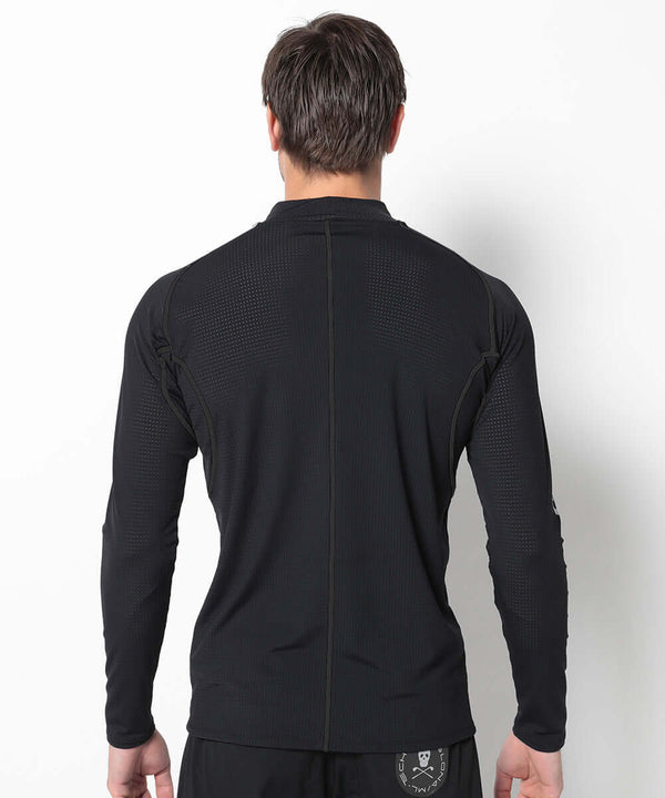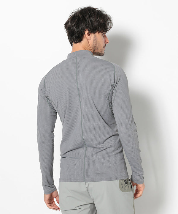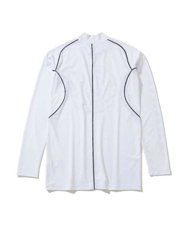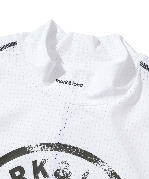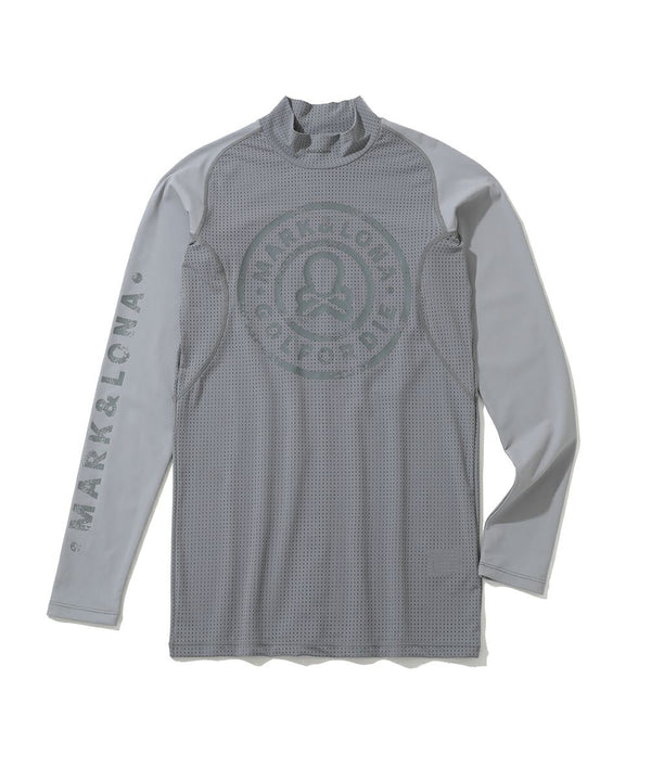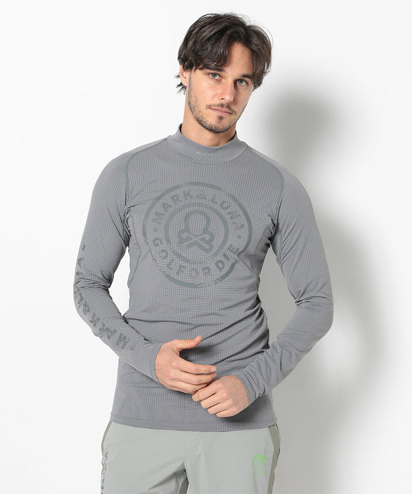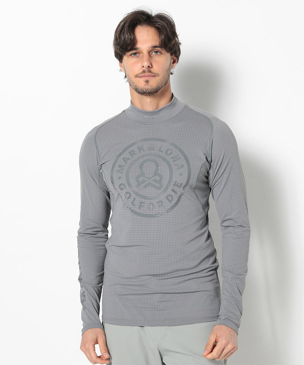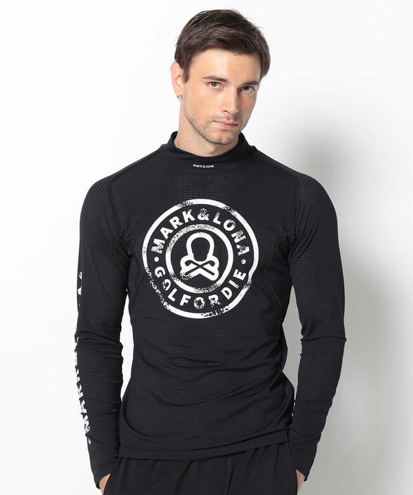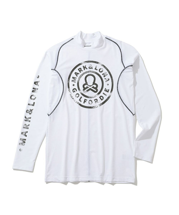 通気性と伸縮性に優れたナイロンメッシュ素材を使用した、スカルモチーフとビンテージ感のあるロゴプリントがアクセントになったモックネックインナーシャツ。