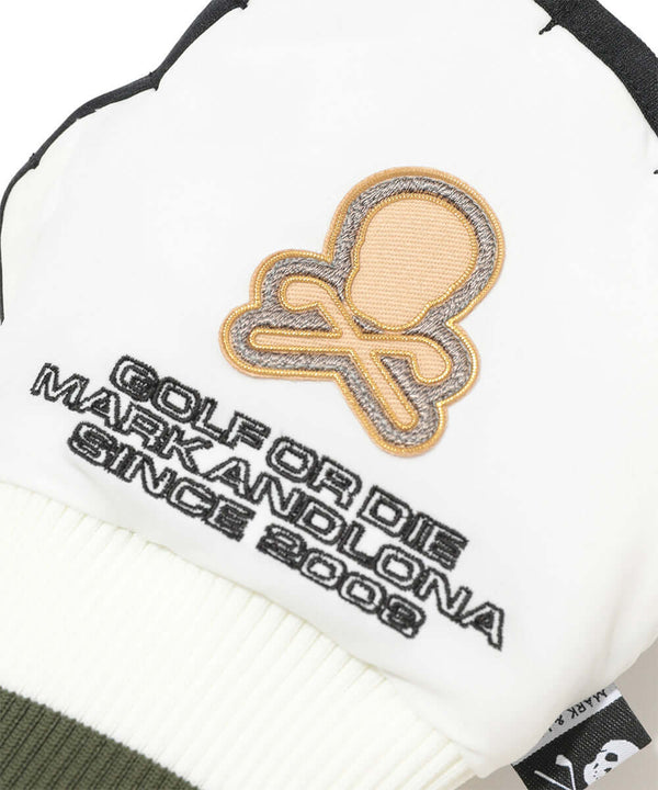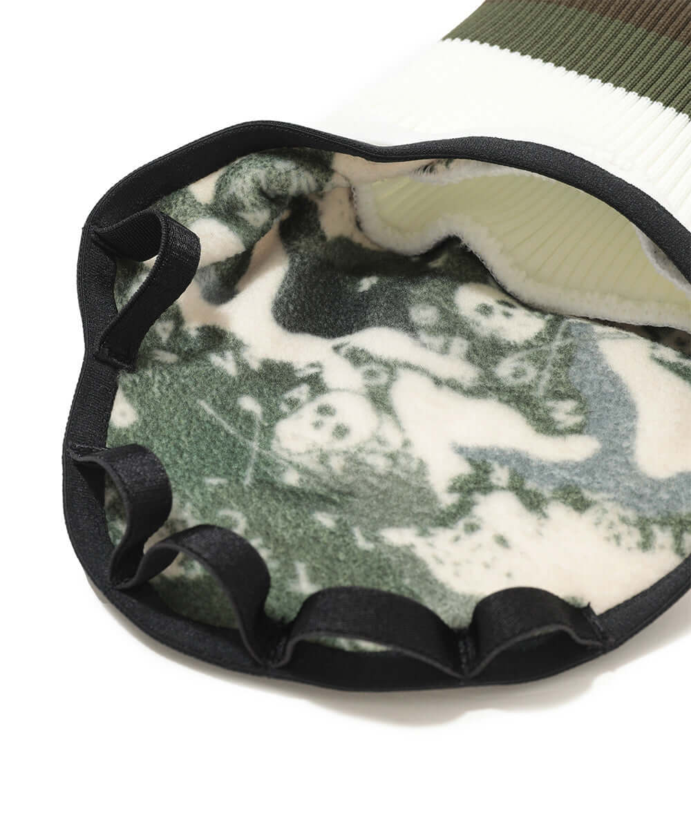 マットなストレッチタフタを使用した手甲グローブ。内側にはカモフラージュプリントをした保温性が高く速乾性と軽さが特徴のポリエステル【POLATEC®ポーラテック】のフリース素材を使用。また4wayストレッチで広い可動域を確保。手の甲にはブランクスカルワッペンと刺繍ロゴが象徴的。また履き口のリブ素材で手首をしっかりホールドします。寒い冬のラウンドで必携のアイテムです。
